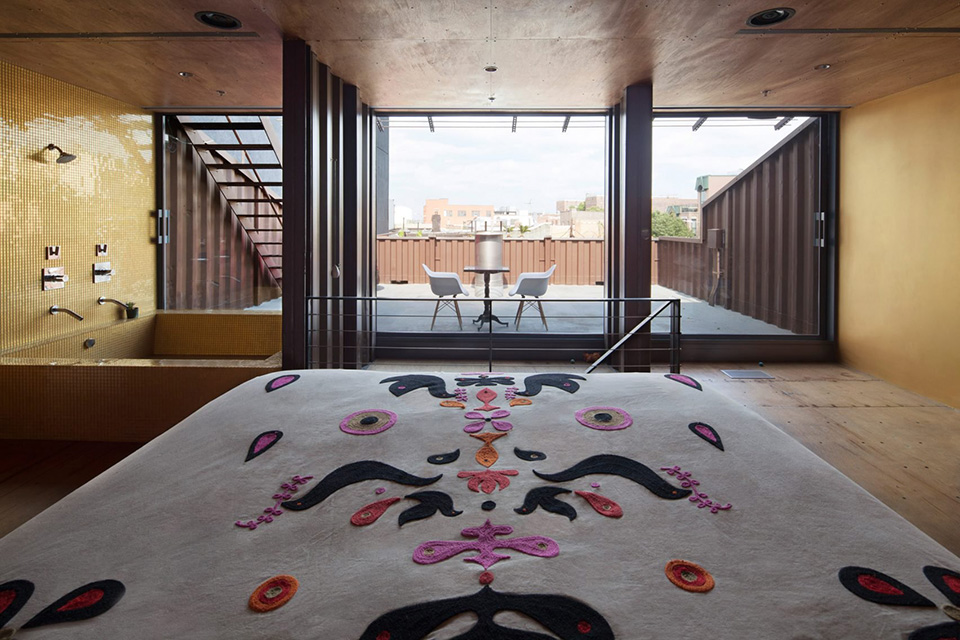 True, another shipping container home stands on Keap Street, a 10-minute walk away. In 2013, the husband-and-wife team of contractor David Boyle and architect Michele Bertomen stacked a few containers and painted them white. But the Carroll House, as it’s known, is larger and more ambitious.