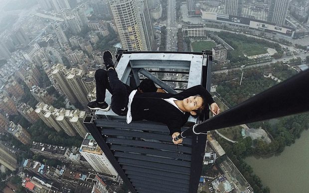 A shocking video shows a daredevil known as ‘China’s First Rooftopper’ falling to his death after attempting to do pull-ups on a 62-storey building. In the clip Wu Yongning, 26, loses his grip and then drops 45ft from the Huayuan International Centre in Changsha, capital of Hunan Province in Central China.
