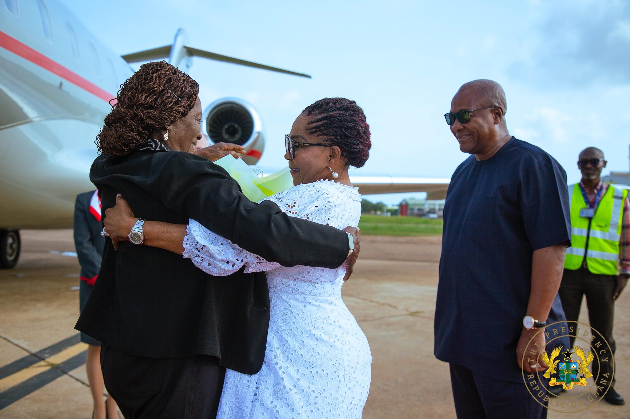 She was welcomed at the airport by President John Dramani Mahama, First Lady Mrs Lordina Dramani Mahama, Chief of Staff Julius Debrah, the Vice President’s Chief of Staff Alex Segbefia, and other senior government officials.